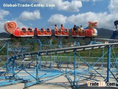Sliding Dragon Coaster is a small gravity coaster with a nice track design.The ride is made up of five cars housing 16-20 passengers each with only one train and performs a double run in the track circuit.The front cars are Themed as DRAGON with decorated fiberglass and could be themed in different subject according to customer’s request.The ride support frames and the base are galvanized (or could be painted upon request). The ride can be delivered in portable version.The lifting transmission is generated by tyres, with law noise impact which is perfect for INDOOR and OUTDOOR use.