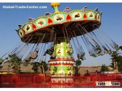 Amusement rides flying chairs ,a suspension-type game facility with rotating and elevating/dropping chairs, is characterized by the follows: amusement park flying chairs elevates and drops in the course of rotating, and tower body panel rotates in a reverse direction; seat will incline with grail after certain elevation, and will dive after reaching the top, just like a swallow shuttling in the air, during which visitors can experience exciting and pleasure; and visitors will be immersed into pleasant atmosphere which integrates interest and enjoyment